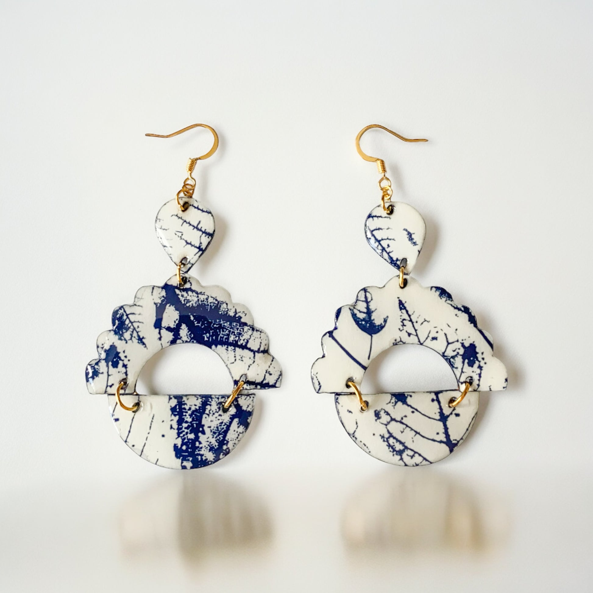 Navy & White Scalloped Edge Recycled Earring