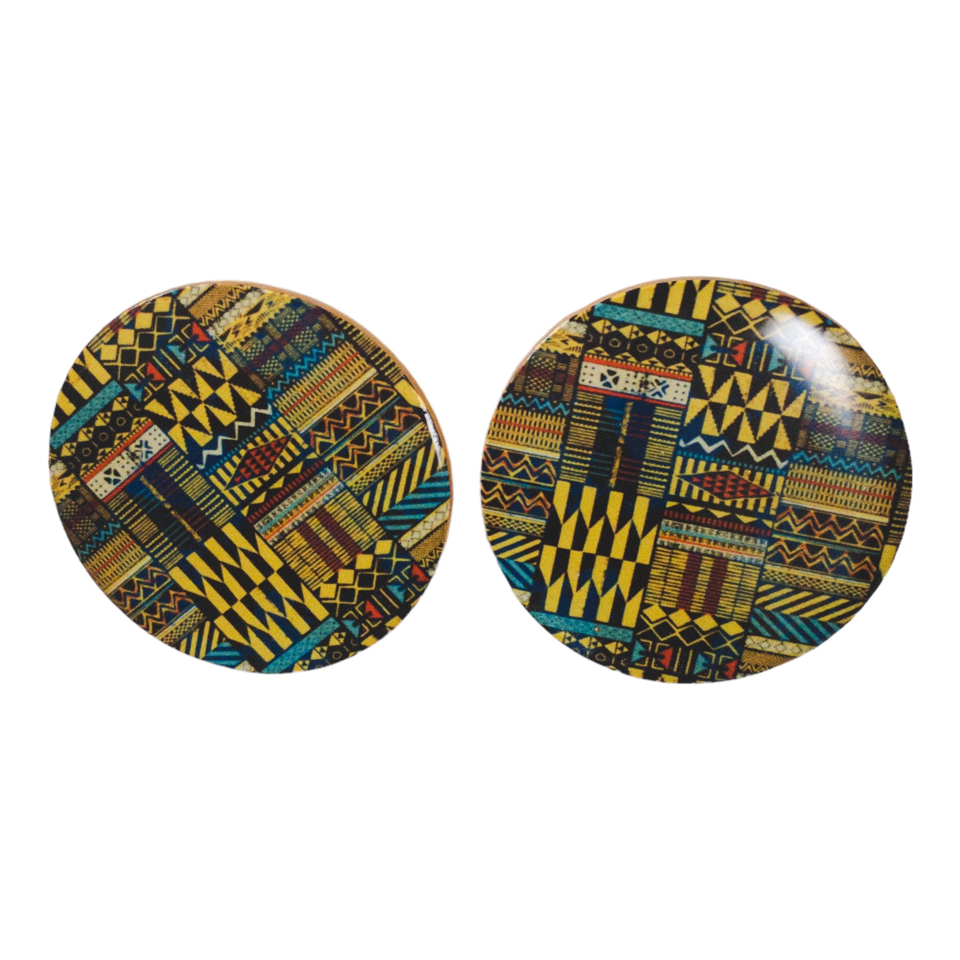 Golden Ankara Pattern Round Disc Recycled Earrings